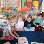 Tydzień o dinozaurach minął nam niezmiernie szybko. Dzieci z ogromną uwagą słuchały ciekawostek o dinozaurach. Dinozaury to stworzenia, które od dawna niezwykle fascynują szczególnie najmłodszych. Przedszkolaki chętnie poznawały nazwy dinozaurów i dzieliły się swoją wiedzą. Nie zabrakło również ciekawych zabaw oraz prac plastyczno-technicznych. Był to szczególny tydzień, pełen radosnych wrażeń.