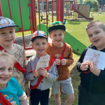 W dniach 10 i 13 maja dzieci z grupy „Jeżyków” i „Lisków” uczestniczyły w grze terenowej zorganizowanej w ogrodzie przedszkolnym w ramach projektu „Baw się, orientuj, koduj” finansowanego przez mBank.