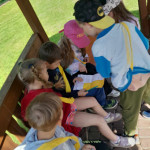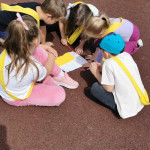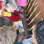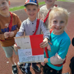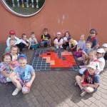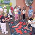 Przedszkolaki zostały podzielone na 4 zespoły, w których wspólnymi siłami rozwiązywały zadania, będące wskazówkami dotarcia do mety i rozwiązania finałowego zadania w formie zakodowanego obrazka.