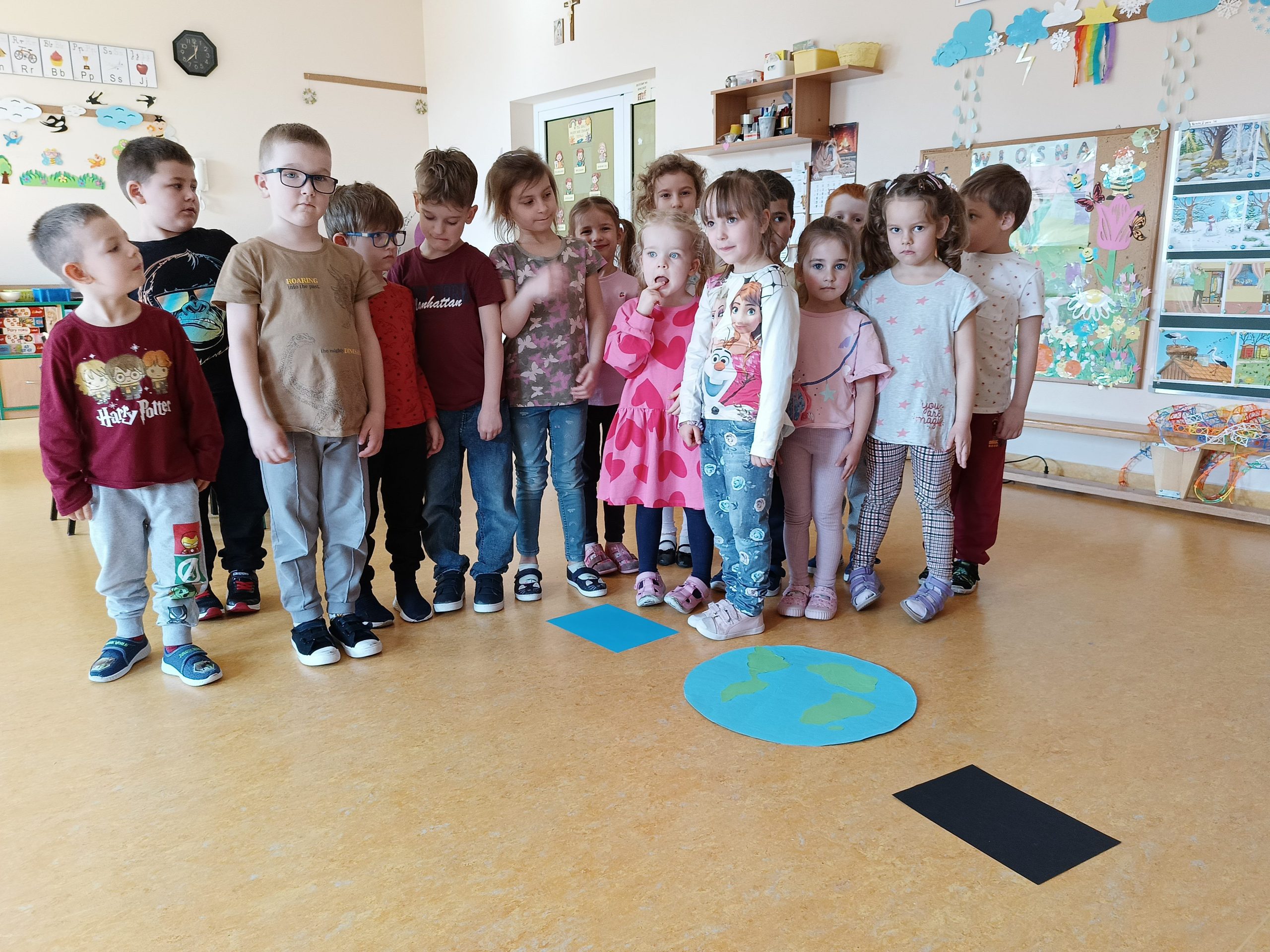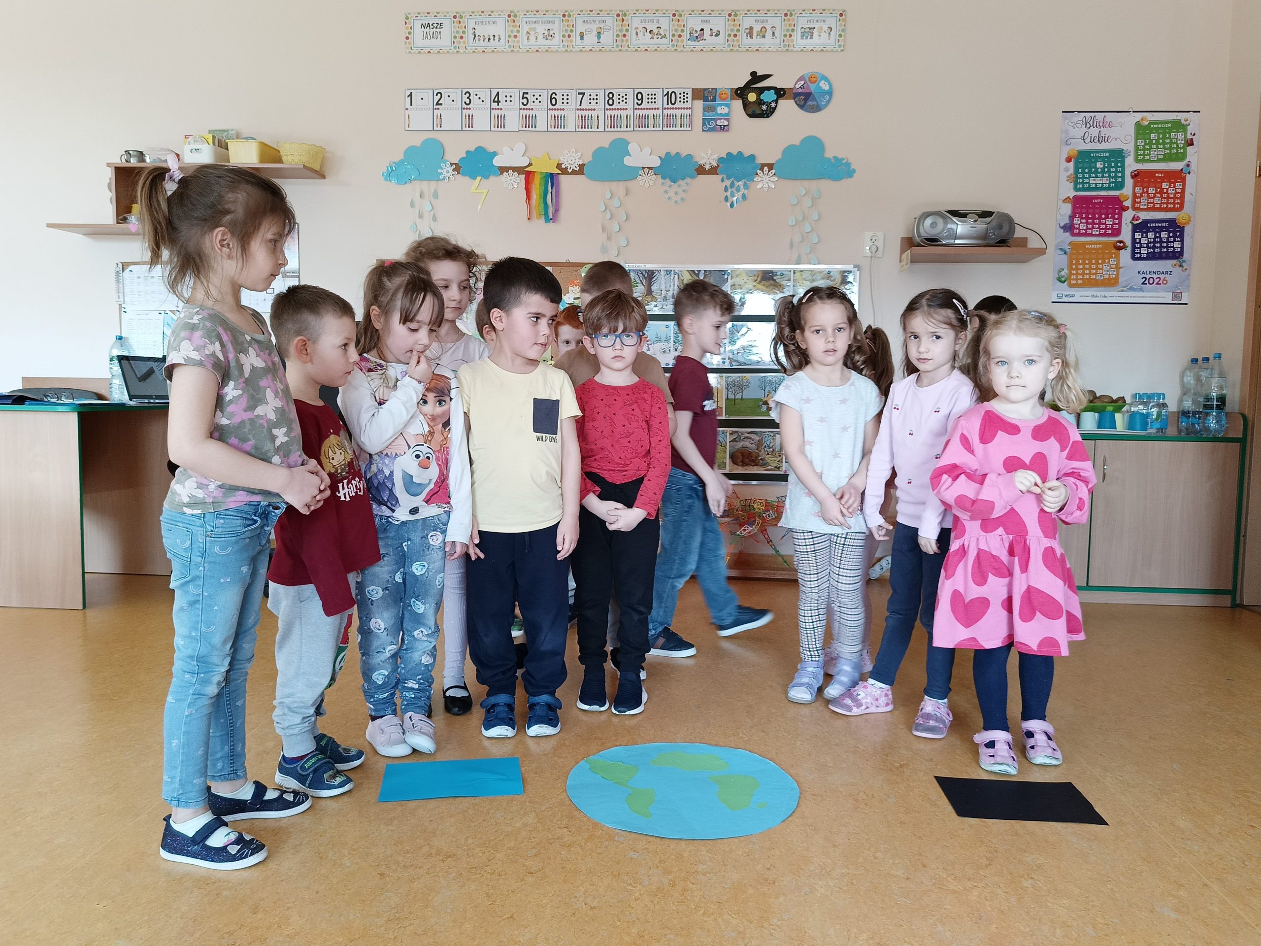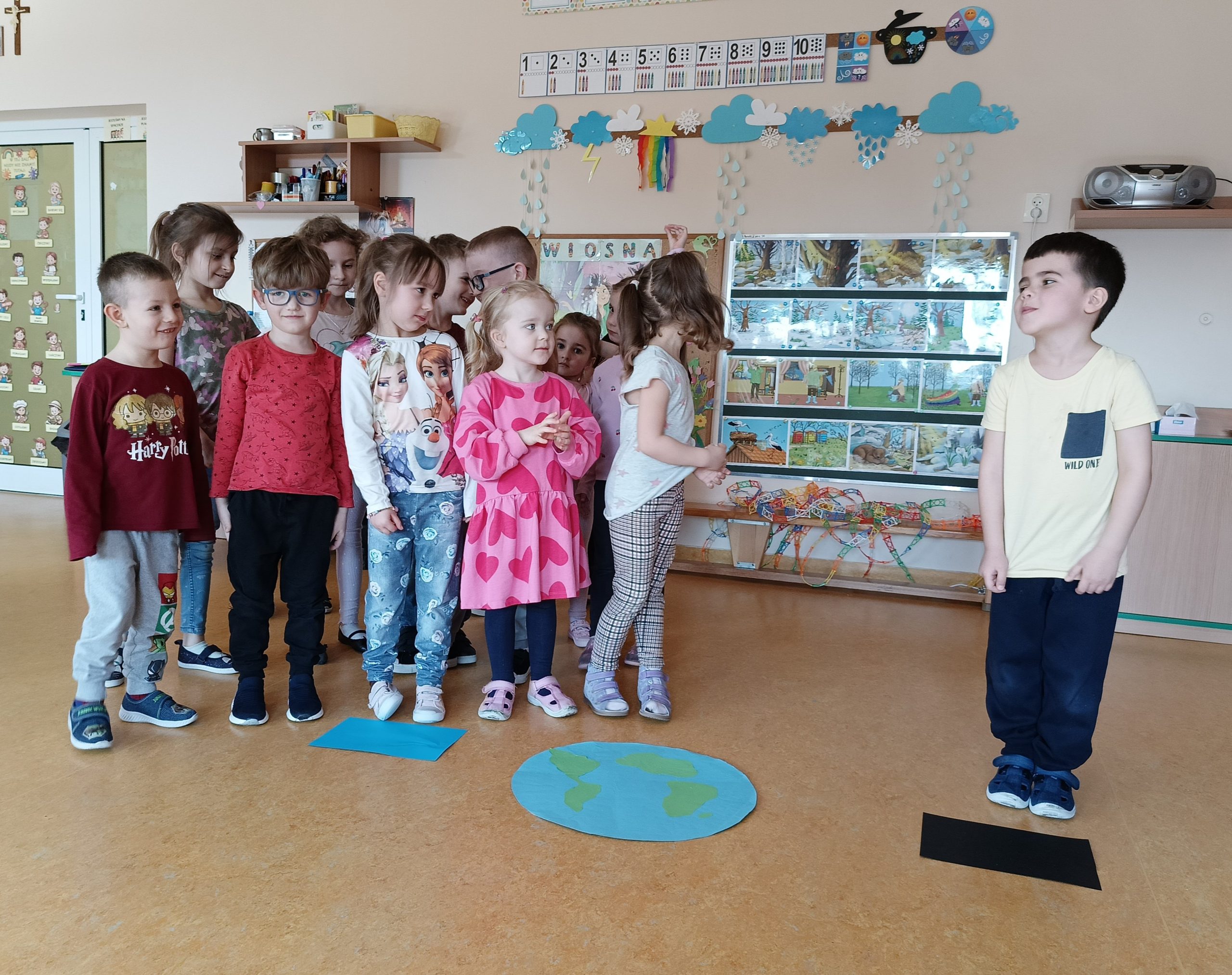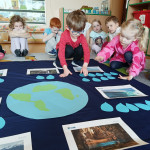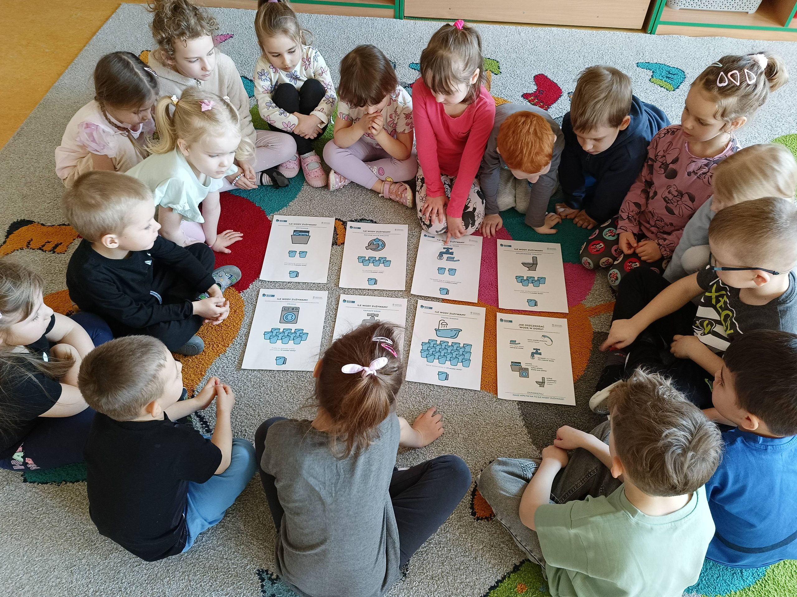 „Akademia Wodnych Agentów” to nowatorski program edukacyjny skierowany do krakowskich przedszkoli oraz klas szkół podstawowych. Inicjatywa zamienia naukę o wodzie w angażującą, interaktywną przygodę, odpowiadającą na współczesne wyzwania klimatyczne. W trakcie zajęć Jeżyki wcieliły się w rolę Wodnych Agentów, odkrywając tajemnice „błękitnego złota” i uczyły się, jak dbać o zasoby wodne w codziennym życiu. Nasza grupa bardzo chętnie zrealizowała następujące zadania: pierwszym zadaniem Agentów była obserwacja wody na Ziemi, następnie odnalezienie wody pitnej na Ziemi. Dzieci określały również jak można oszczędzać wodę w domu. Ustaliły, dlaczego woda pitna jest tak ważna. Na zakończenie misji wszyscy otrzymali dyplom małego Agenta Agencji Ochrony Wody i zostało im powierzone bardzo ważne zadanie, żeby same oszczędzały wodę oraz pokazały innym – mamom, tatom, rodzeństwu – jak to robić.