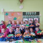 i roślinożerne. Wypowiadały się na temat dinozaurów zainspirowane  wysłuchanym wierszem B. Formy p.t. ” Kto widział Dinozaura? „, a także oglądanymi ilustracjami. Ćwiczyły liczenie, porównywanie liczebności zbiorów, utrwalały nazwy kolorów poprzez przeliczanie różnobarwnych dinozaurów i jaj w gniazdach. Ponadto przedszkolaki wykonały pracę plastyczną „Kolorowy dinuś” z użyciem papierowego talerzyka.