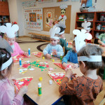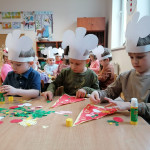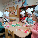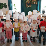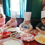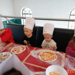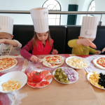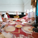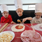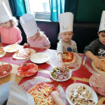 Sala Jeżyków zamieniła się w prawdziwą, włoską pizzerie. Na zajęciach dzieci dowiedziały się jak powstaje ten kultowy włoski placek i jakich składników potrzeba, aby go przygotować. Poznały historię jego powstania oraz dowiedziały się, z którego kraju pochodzi. Dzieci w trakcie zabaw świetnie się bawiły, poszukiwały niezbędnych produktów ujętych na liście zakupów i wkładały je do sklepowego koszyka oraz tańczyły przy piosence z pizzą w roli głównej. Przedszkolaki miały możliwość stworzenia pracy plastycznej „Moja ulubiona pizza”. Tego dnia wybraliśmy się do pobliskiej Restauracji Piecyk na warsztaty kulinarne pt. „Pizza też może być zdrowa”. Wycieczka miała na celu zapoznanie dzieci z zawodem kucharza oraz wyglądem, wyposażeniem pizzerii, a także sposobem przygotowania pizzy. Podczas warsztatów kulinarnych dzieci dowiedziały się skąd pochodzi tak lubiane przez wszystkich danie, poznały etapy wykonania pizzy, dowiedziały się jakie składniki są potrzebne do jej wykonania, a na zakończenie w czapkach kucharskich samodzielnie przygotowały pizzę. Przedszkolaki wałkowały ciasto, smarowały sosem, komponowały ulubione dodatki. Warsztaty sprawiły dzieciom wiele radości, a samodzielnie przygotowana pizza smakowała wyśmienicie.