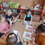 Przedszkolaki bawiły się w różne zabawy muzyczno-ruchowe związane w bohaterami dnia, oraz wykonały różne prace plastyczne z misiem w roli głównej. Dzieci bawiły się doskonale, a na koniec zajęć otrzymały odznakę „Przyjaciela Pluszowego Misia”.