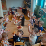 16 października obchodziliśmy Dzień Warzyw i Owoców. Dzieci miały okazję bliżej poznać różnorodne warzywa i owoce – ich nazwy, kolory, kształty i zapachy. Przedszkolaki chętnie dzieliły się swoją wiedzą na temat zdrowego odżywiania oraz ulubionych owoców i warzyw.