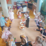 Zajęcia dostarczyły wszystkim wiele radości i były świetnym połączeniem nauki z zabawą. Dziękujemy rodzicom za przyniesione produkty!