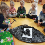We wtorek przedszkolaki z grupy VII rozmawiały na temat pracy górnika. Dzieci poznawały właściwości węgla kamiennego poprzez różnego rodzaju zabawy badawcze. Z tej okazji dzieci odwiedził wyjątkowy gość-dziadek naszego Kacperka, który był górnikiem. Nasz wspaniały gość opowiadał dzieciom jak wyglądała jego praca, jakimi narzędziami posługują się górnicy, przybliżył etapy wydobywania węgla oraz innych surowców kopalnianych. Podczas spotkania przedszkolaki miały także okazję zobaczyć górniczy strój galowy. Największym zainteresowaniem cieszyła się górnicza czapka (czako)