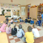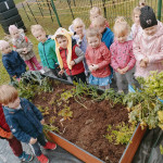 „Nie lada to gratka! Poznajemy Misia Uszatka'” Grupa IV MISIE ukończyła drugi moduł projektu. Dzieci wysłuchały kolejnych opowiadań o przygodach Misia oraz wykonały przewidziane na miesiąc październik aktywności. Poznawały i utrwalały nazwy darów jesieni, zorganizowały wycieczkę na tereny Ogródków działkowych, gdzie poznawały pracę ogrodnika, rozwijały kompetencje matematyczne, segregując, przeliczając i porównując zbiory z darami jesieni a także nauczyły się jesiennej piosenki ” Warzywa i owoce”. Samodzielnie wykonały i zjadły przepyszną sałatkę owocową i wykonały piękne jesienne prace plastyczne. A co najważniejsze Grupa Misie założyła również swój własny ogródek.
