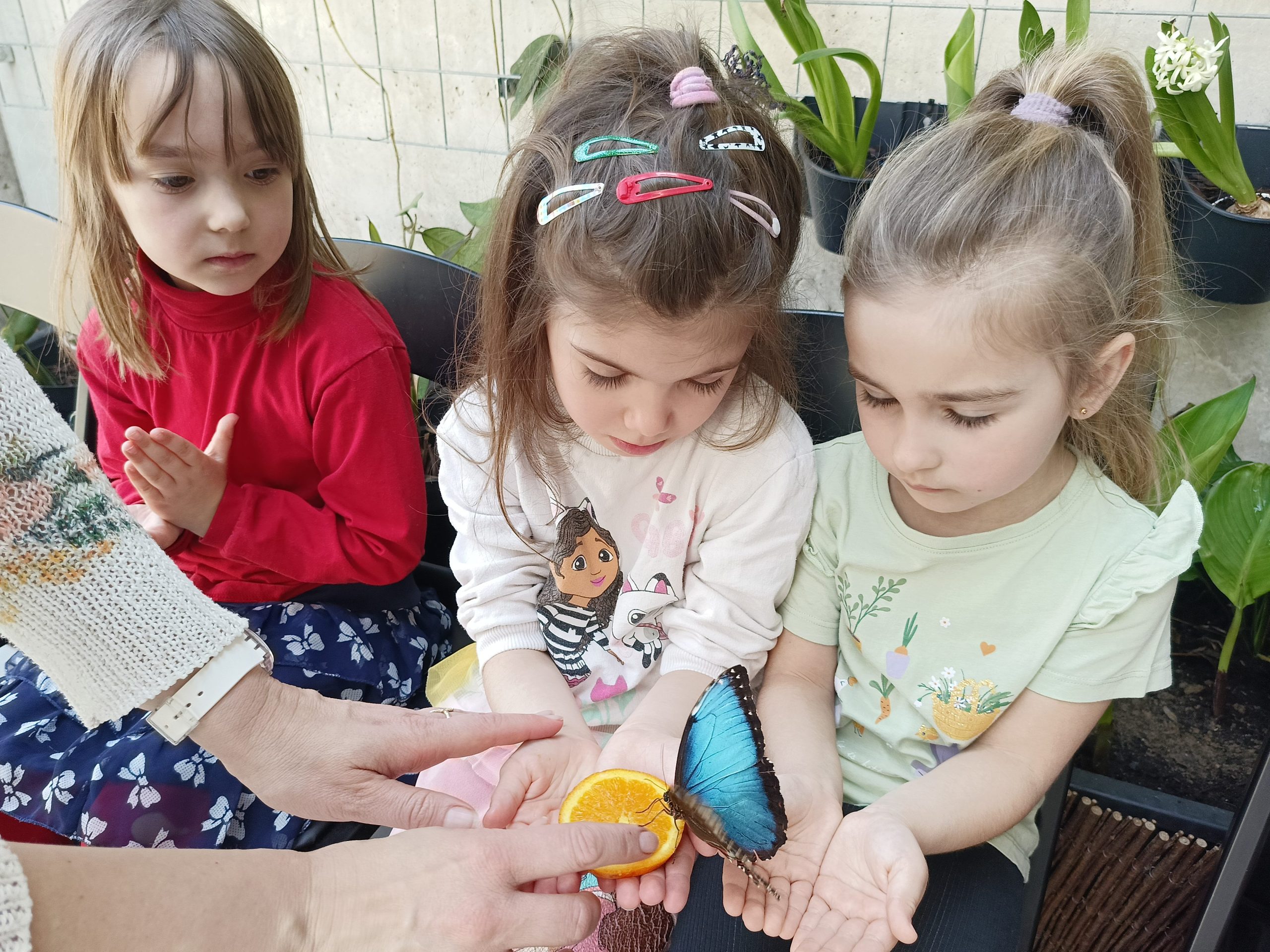 W poniedziałek 23 marca dzieci z grup: Liski, Rybki i Jeżyki wybrały się na wycieczkę do Motylarni w Ulinie. Dzieci dowiedziały się wiele o życiu motyli. Mogły zobaczyć motyle żyjące w naszym kraju, ale też te, które żyją w Afryce, w Ameryce Południowej i w Azji. Widziały m.in. motyle: morpho (morfo), kaligo, pawicę atlas, rusałkę osetnik, rusałkę pawik, rusałkę pokrzywnik. Dzieci podziwiały różnorodne barwy i kształty motyli, co uwrażliwiło je na piękno przyrody. Dzieci mogły karmić sokiem z pomarańczy latające wokół nich owady pamiętając, że nie wolno dotykać skrzydeł i motyla, bo to może spowodować jego śmierć. W Motylarni przedszkolaki oglądały przez mikroskop jaja motyli, gąsienice, poczwarki i dorosłe motyle. Widziały hodowlę gąsienic i poczwarek. Tajemniczy i barwny świat motyli jest szczególnie interesujący dla najmłodszych. Dzieci uwielbiają motyle za ich zwiewny lot oraz kolorowe skrzydła, które mienią się w słoneczne dni. Chcąc wspierać poszerzanie przez dzieci wiedzy przyrodniczej, kupujemy im atlasy oraz książki o motylach, pełne kolorowych ilustracji. Żadna książka nie zastąpi jednak wiedzy zdobywanej w praktyce, poprzez kontakt z żywą przyrodą! W jaki sposób jednak spotkać setki gatunków motyli w jednym miejscu? Wycieczka do Motylarni miała na celu rozbudzenie przyrodniczej ciekawości dzieci poprzez bezpośredni, egzotyczny kontakt z motylami z różnych zakątków świata. Edukacyjne cele obejmują poznanie cyklu rozwojowego owadów, obserwację ich zachowań oraz naukę szacunku do natury, połączone z warsztatami mikroskopowymi. Możliwość podziwiania swobodnie latających motyli w tropikalnym otoczeniu była dla dzieci fascynującym przeżyciem.