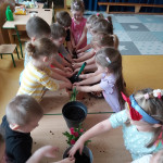 Grupa Sówek w tym tygodniu poznała cykl wzrostu rośliny – „Od ziarenka do roślinki” oraz zapoznała się z kolejnymi czynnościami wykonywanymi podczas siania i sadzenia, następnie przedszkolaki przystąpiły do praktyki dzieci sadziły i siały. Na zakończenie ustaliły w jaki sposób będą pielęgnować swoje roślinki. Mali ogrodnicy będą mieli okazję obserwować kiełkowanie i wzrost roślin w swojej sali.