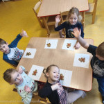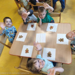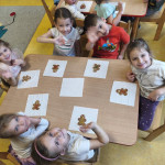 Świętowanie rozpoczęliśmy od chwili skupienia i ciekawości. „Sówki” z zainteresowaniem wysłuchały historii powstania pluszowego misia, dowiadując się, skąd wzięła się ta najpopularniejsza zabawka na świecie. Jednak teoria to nie wszystko! Chwilę później dzieci zamieniły się w detektywów podczas poszukiwań misiów ukrytych w różnych zakamarkach sali. Radości przy odnajdywaniu kolejnych pluszaków było co niemiara!