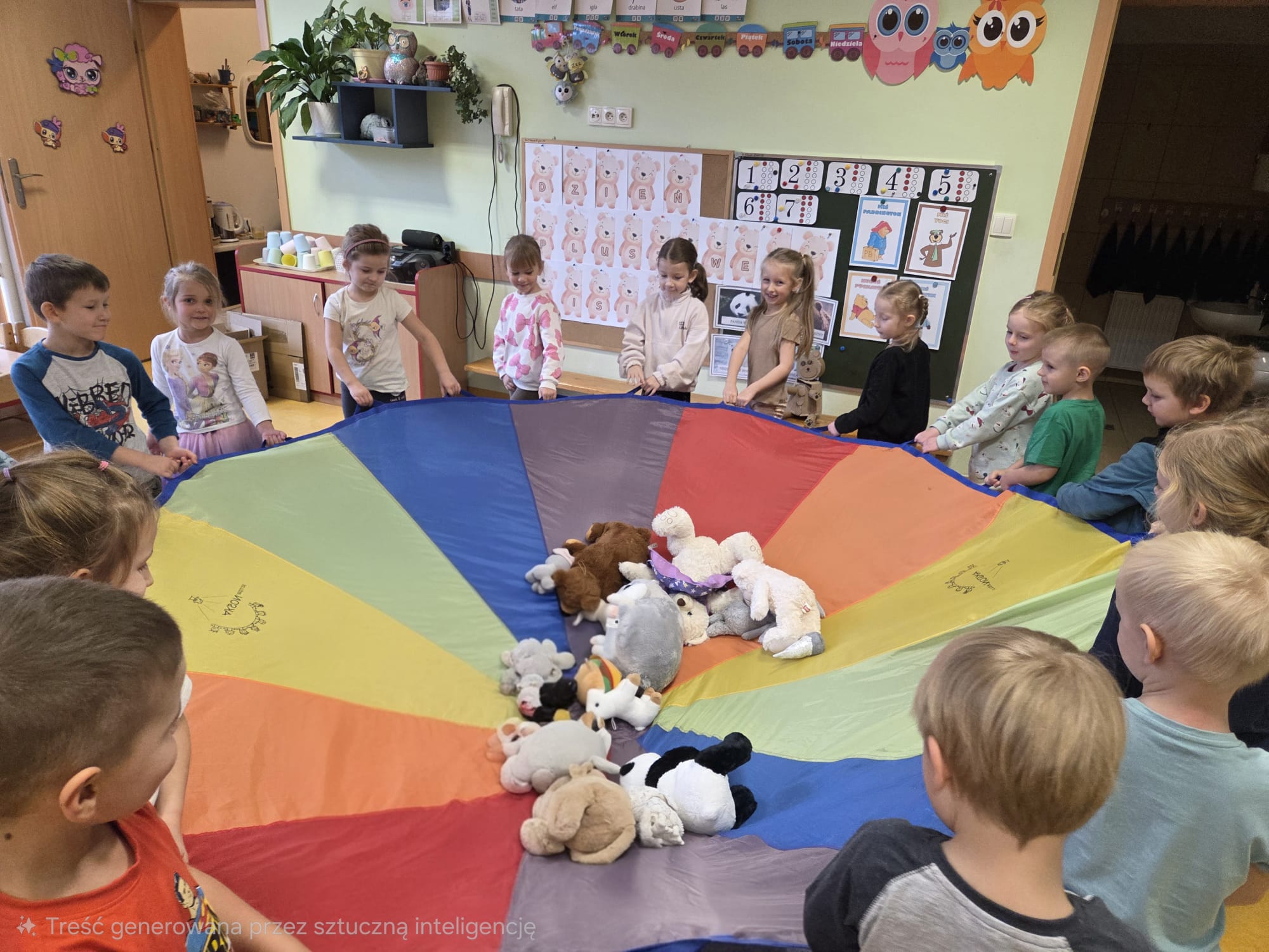 Tego poranka nasza sala zamieniła się w prawdziwą „Misiową Krainę”. Każdy przedszkolak przekroczył próg przedszkola w towarzystwie swojego ulubionego pluszaka, który przywędrował z nim prosto z domu. Były misie małe i duże, te całkiem nowe i te nieco wysłużone – ale wszystkie tak samo kochane.