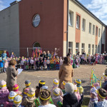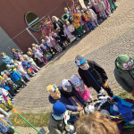 Następnie po wykonaniu pamiątkowych zdjęć wyruszyliśmy barwnym pochodem z marzanną i gaikiem po okolicy.