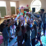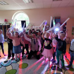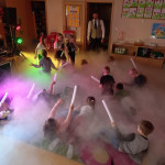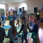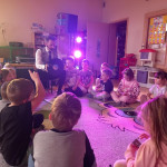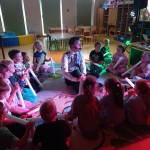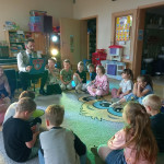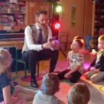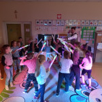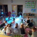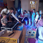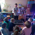 W ubiegłym tygodniu gościem w grupie „Lisków” był Pan Piotr Jędrszczyk- tata Antka, który opowiadał dzieciom o swojej pracy w ramach  idei „Poznajemy zawody rodziców”. Przedszkolaki dowiedziały się wiele ciekawostek dotyczących pracy didżeja, poznały sprzęt potrzebny do takiej pracy i mogły go wypróbować. Pan Piotr opowiedział o różnych nośnikach pamięci służących do zapisu muzyki obecnie i dawniej, a także pokazał je dzieciom. Zorganizował też „pokaz chmur”, w których przedszkolaki mogły się zanurzyć. Oprócz tego dzieci uczestniczyły w wielu zabawach tanecznych prowadzonych przez zaproszonego gościa, a na koniec otrzymały prezent w postaci ledowej pałeczki, z którą doskonale się bawiły. Przedszkolaki miały świetną zabawę połączoną z nauką i na pewno ten dzień na długo pozostanie w ich pamięci.