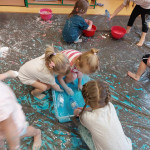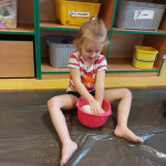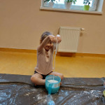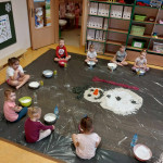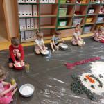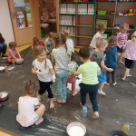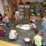 z zasadami obowiązującymi podczas zabawy, a następnie troszkę onieśmielone ruszyły na podbój mąk i kolorowych makaronów. W ten zimowy czas przedszkolaki zrobiły ciecz nienewtonowską z której później powstały niezwykłe różnobarwne ciasta. Wszystkie dzieci świetnie się bawiły, a poprzez zabawę zdobywały nowe doświadczenia.![]()
