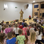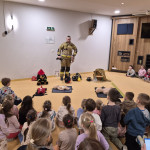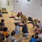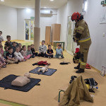Podczas spotkania dzieci miały okazję dowiedzieć się, na czym polega praca strażaka oraz jak ważna jest szybka i odpowiednia reakcja w sytuacjach zagrożenia. Nasz gość opowiedział o zasadach udzielania pierwszej pomocy, przypomniał numery alarmowe oraz wyjaśnił, jak należy zachować się w przypadku pożaru czy wypadku. Przedszkolaki z dużym zainteresowaniem słuchały i chętnie odpowiadały na pytania.