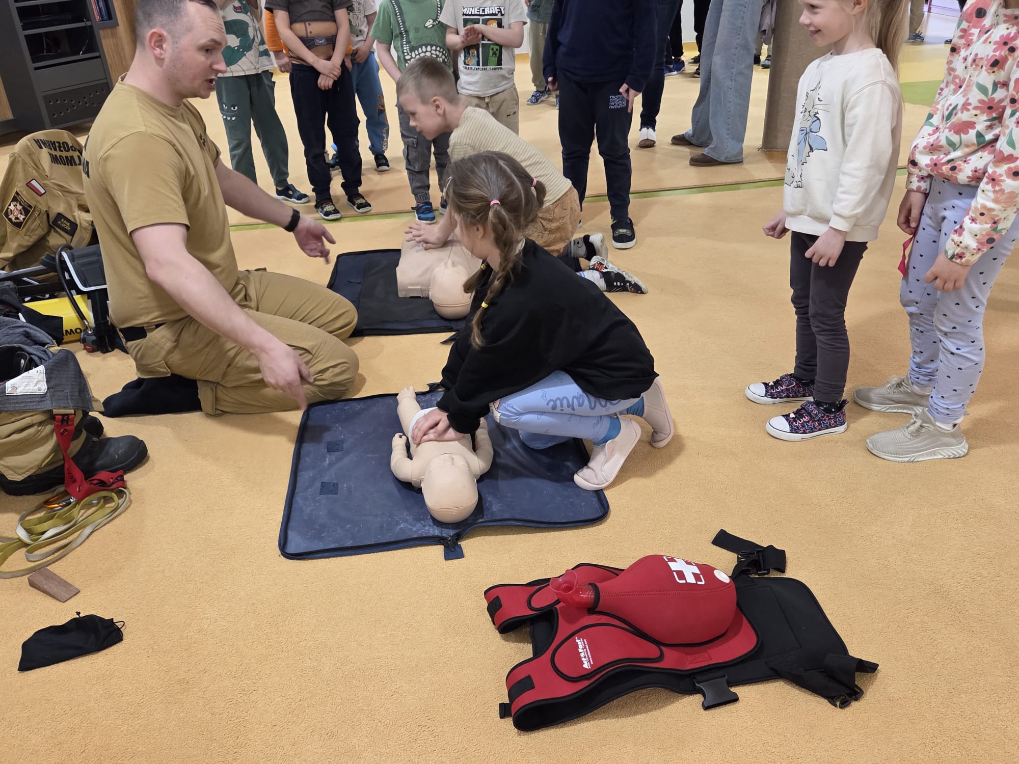 Dzieci mogły zobaczyć elementy stroju strażaka, a także dowiedzieć się, do czego służy m.in. butla tlenowa wykorzystywana podczas akcji ratunkowych. Nie zabrakło również praktycznych pokazów, które wzbudziły ogromne emocje i zachwyt wśród najmłodszych.