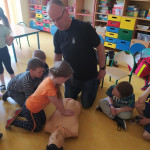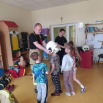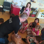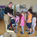 W maju odwiedzili nas strażacy z OSP Tenczynek – Edwin Mazurkiewicz i Bartłomiej Patrzyk panowie w ciekawy sposób przybliżyli dzieciom, na czym polega ich praca oraz jakim sprzętem ratowniczym się posługują. Dzieci dowiedziały się, że ich działania nie polegają tylko na gaszeniu pożarów, ale również na udzielaniu pomocy ludziom podczas powodzi, burz i wypadków samochodowych. Strażacy ratują ludzi i zwierzęta gdy zagraża im niebezpieczeństwo narażając często swoje życie. Podczas spotkania przedszkolaki miały możliwość oglądania munduru i wyposażenia strażaka oraz utrwalenia numerów alarmowych. Duże wrażenie na dzieciach zrobił “fantom”, na którym dzieci mogły przećwiczyć udzielanie pierwszej pomocy. To ważne aby dzieci wiedziały jak się zachować się w sytuacjach zagrożenia życia oraz gdzie można otrzymać pomoc i jak o nią prosić.