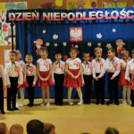W piątek 10 listopada 2023 r. odbyła się w naszym przedszkolu uroczystość z okazji Narodowego Święta Niepodleglości. Grupa Jeżyki przygotowała akademię „Polska – moja ojczyzna”, w ten sposób dzieci kształtowały postawę szacunku do historii naszego kraju, symboli narodowych oraz rozwijały umiejętności społeczne ukierunkowane na prawdę, dobro i piękno. Wszyscy wspólnie odśpiewaliśmy Hymn Polski „Mazurek Dąbrowskiego”.