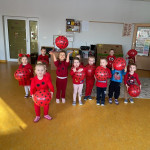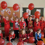 Dzieci z grupy I „Biedronki” ubrały się na czerwono i miały na sobie czarne kropeczki.