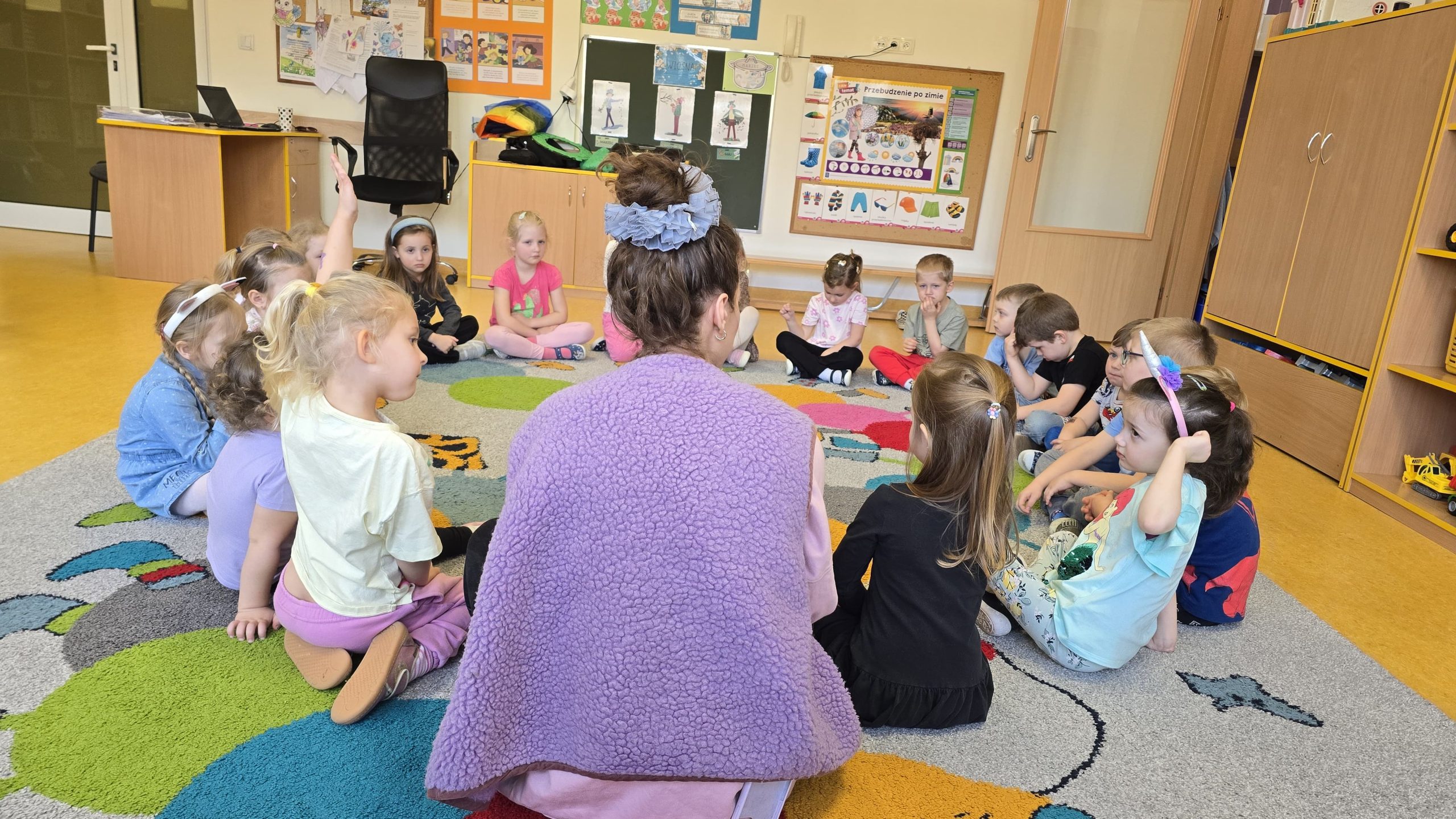 Serdecznie dziękujemy Pani Małgosi za poświęcony czas, wspólne czytanie oraz wartościową rozmowę z dziećmi o emocjach. Było to bardzo ciekawe i ważne spotkanie dla naszych przedszkolaków.